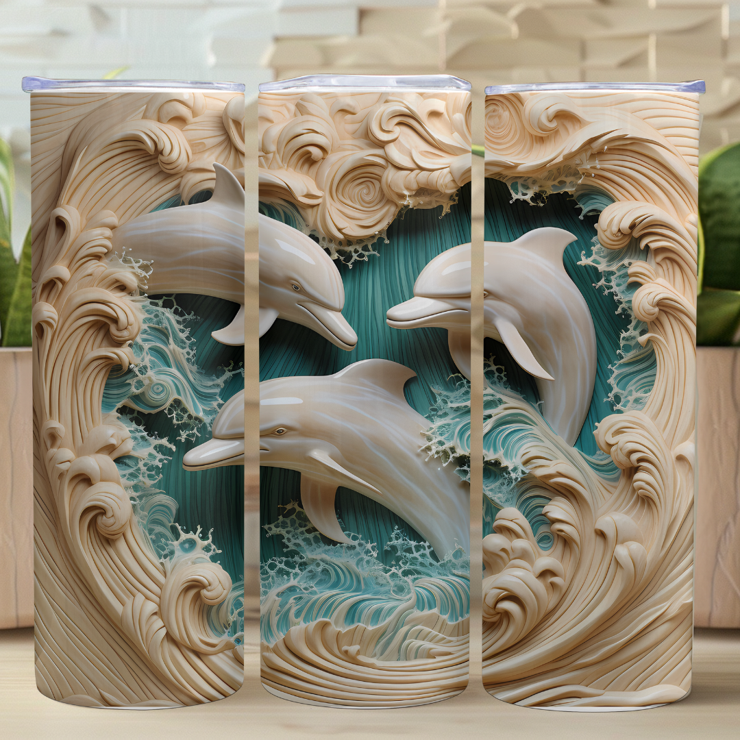 Dolphins in Waves - 20oz Skinny Tumbler (Personalization Available)
